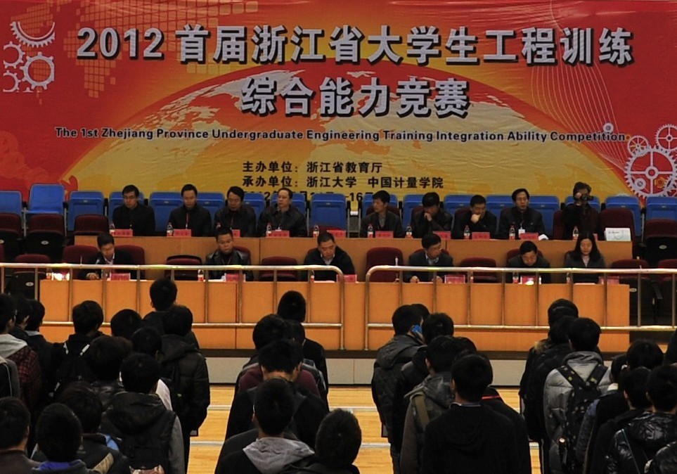 2012年12月14—16日,由浙江省教育厅主办,浙江大学、中国计量学院承办的首届浙江省大学生工程训练综合能力竞赛决赛在中国计量学院天健体育馆隆重举行。本届省大学生工程训练竞赛大赛自9月份起动以来,各参赛高校报名踊跃,共有来自省内33所高校270余支队伍报名参加了省赛选拔,并有111支队伍成功进入决赛环节。本届竞赛竞赛秉承“竞赛为人才培养服务,竞赛为教育质量助力,竞赛为创新就业引路”的办赛宗旨,得到浙江省教育厅、浙江大学、中国计量学院的高度重视和大力支持,成为我省高校工程训练教学领域展示教学成果、交流教学经验、提升学生综合素质的一次盛会。